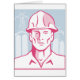 vector Illustration eines Bau-Ingenieur-Arbeitskraft tragenden Hardhat mit Mast und Gebäude im Hintergrund, der in der Retro Art erfolgt ist.