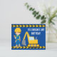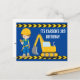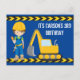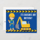 Cooles Kleinbaufahrzeug Geburtstagsfeier für ein Kind, das Fahrzeuge in schwarz und gelb Liebe baut. Die Kinderpostkarte lädt ein für einen kleinen Jungen, der Bagger, Autos und LKWs Lieben. Passen Sie Ihre Party-Informationen auf der Rückseite an.