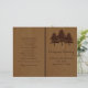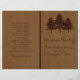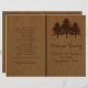 Baum auf Holz braunen Wald Hochzeit Zeremonie und Party gefaltet Programm mit drei Nadelbäumen auf Holzkorn und Text in braun. Dieses moderne und stilvolle Hochzeitsdesign ist ein vollständig anpassbares Template und ist Teil eines Hochzeitsgrades, das sich perfekt für eine rustikale Waldhochzeit eignet. Man muss es in der Mitte falten. Wählen Sie nur diesen Papierwert aus, da er sich gut faltet. Beachten Sie, dass es nicht reales Holz nur ein PRINTED-Bild gibt.