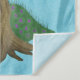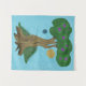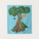"Baum des Lebens" in grün, braun, lila und gold auf blauem Hintergrund.