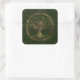 Baum des Lebens - Yggdrasil - grün und gold Quadratischer Aufkleber