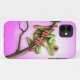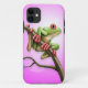 Ein grüner Baumfrosch wird auf einer Niederlassung vor einem hellrosa Hintergrund gehockt. Der Frosch schaut weg rechts mit einem von ihm ist die hellen roten sichtbaren Augen. Des kleinen roten die Hände und die Füße Typ werden um eine dünne braune Niederlassung eingewickelt, die an der Unterseite des Entwurfs anfängt und und auf das links hochschiebt. Dieser helle und bunte Entwurf macht einen niedlichen und playful Fall iphone4.