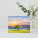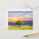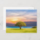 Schöne Landschaft auf dieser Postkarte. Ein zentraler Baum, Set gegen einen farbenfrohen Himmel und lebendiges Gras.