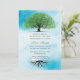 Diese elegante Karte ist ideal, um Ihre nahen Verwandten und Freunde zu sammeln, um einen Gedächtnisdienst zu halten und Erinnerungen von einer Person zu teilen, die Sie lieben und verloren haben. Es hat einen Baum voller grüner Blätter auf einem blauen Aquarellhintergrund, der an den Himmel erinnert. Die Wurzeln des Baumes sind unten. Dieses schöne Design hat eine schöne Bedeutung für Leben und Vermächtnis. Die unisex Farbpalette ist beruhigend und inspirierend.