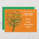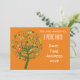 Ein Picknickmittagessen oder EINE GRILLEN-Einladung, die einen Baum mit Blätter in der Natur kennzeichnet. Diese niedliche vibrierende Illustration kennzeichnet einen völlig kundengerechten orange Hintergrund mit kundengerechtem Text. Vervollkommnen Sie für ein Sommerpicknick-Treffen- oder Parkmittagessen-Party.