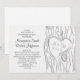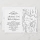 Herz der Liebe auf dem Kofferraum des alten Eichenbaumes mit den Initialen von Braut und Bräutigam. Moderne, weiße und graue Einladung zur Verlobungsfeier.