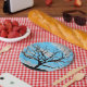 Diese Teller haben ein cooles Bild eines nackten Baumes auf ihnen.