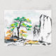 Baum und Landschaft mit Bergdorf Postkarte