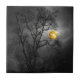 Silhouette eines bloßen Baums voll der Raben nachts mit einem Vollmond für einen bös beängstigenden Blick.