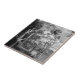 Ein Schwarz-Weiß-Fotodesign von Herbstbäumen, Weg und See.