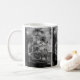 Ein Schwarz-Weiß-Fotodesign von Herbstbäumen, Weg und See.