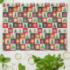 Bäume, Ziergegenstände und Sterne auf den roten, grünen und ökologischen Plätzen schaffen ein niedliches und unterhaltsames Küchentuch mit einer ästhetischen Ästhetik aus der Mitte des Jahrhunderts. Ideal für Ihren Urlaub Zuhause!