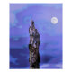 Ein digitales Kunstdesign eines toten Birkenbaums gegen einen mondbeleuchteten Himmel.