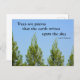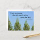 Diese schöne fotografische Postkarte zeigt Kahlil Gibrans Zitat "Bäume sind Gedichte, die die Erde am Himmel schreibt", gepaart mit einem atemberaubenden Foto grüner Kiefernbäume, das in Richtung eines klaren blauen Himmels reicht. Es ist die perfekte Mischung aus Poesie und Natur, die die ruhige Schönheit der Natur erobert.