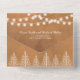 Bäume und Saitenleuchten auf gebräunt braun fallen alle in einer Einladung zur Hochzeit. Weiße Bäume und Saitenleuchten sind in braun gefärbter Farbe gehalten. Die Namen sind in der Skripttypografie, und der Riss von der RSVP-Karte kann gelöst werden.
