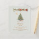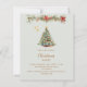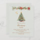 Eine Wintereinladung für ein Weihnachtsfest im Party. Ein sanfter, hellgrüner Hintergrund auf der Vorderseite, der mit einem von Hand gezeichnet, wasserfarbenen Kiefernbaum mit roten und goldenen Verzierungen geschmückt ist. Einige Sterne und eine weihnachtlich dekorierte Garage mit Zapfen und roten Poinsettia Blume. Personalisieren Sie Ihre Party-Daten und fügen Sie sie hinzu. Goldener Text. 1 Blatt = 1 Einladung mit Druckkante bis Kante.