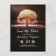 Rustikale rosa Korallenhochzeit bewahrt die Dattelkarten mit romantischem alten Eichenbaum und traumhaftem Lichterdesign. Schöne Vintage und doch moderne Postkarten für naturlich inspirierte Hochzeiten.