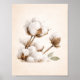 Bereit zur Rahmung. Bringen Sie sanfte Schlichtheit in Ihren Raum mit diesem minimalistischen Baumwollzweig-Wandkunstwerk. Es zeigt eine detaillierte Nahaufnahme natürlicher Baumwollkapseln vor einem warmen, neutralen Hintergrund und verbindet modernen Farmhouse-Stil mit sauberem, luftigem Design.