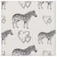 Zebra-Stoff mit Illustrationen von Wanderzebras und Herzerkrankungen. Einzigartiges Stoffdesign, das Ihnen dabei hilft, Ihre Liebe für die wunderschönen Wildtiere mit schwarz-weißen Streifen zu zeigen. Kann für alle Arten von Kunst- und Handwerksprojekten verwendet werden.