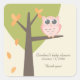 Braun Baumzweig niedlich rosa Uhu Herbst Baby Dusche Danke Aufkleber. Babyduschkleben im Herbst mit quadratischen Aufklebern, mit rotem Kleid, braunem Baumstamm, grünem Baum, orangefarbenen Blätter und rosa Eule (zeichnend), mit großen Augen, auf einem braunen Zweig sitzend, auf beige/ecru Hintergrund bedruckt. Einfache Personalisieren Sie Herbstbabwdusche "Danke" Aufkleber mit Ihren Party-Details und Lieblingsfarben.