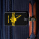Silhouette of construction platform with crane. Vector icons with customizable color. Custom text on both sides.