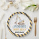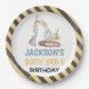 Bagger Gelbe Bauweise Dirty 3rdy Plate Dirty 3rdy Birthday Papierplatte mit einem Bagger und einem gelb-schwarz gestreiften Muster.