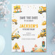 Laden Sie Freunde und Familie ein, um mit unserem schönen Save the Date im Thema Baufahrzeuge an der Feier teilzunehmen. Save the Date für deinen Jungen.