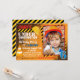 Baustelle mit Schmutzhintergrund, hartem Hut, Kegel und Bauband. Geburtstagsparty Einladungs-Kartendesign. Alter 6.