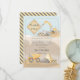 Die Babydusche "Danke" wurde mit einer abgestuften Aquarellpalette entworfen, die weniger traditionell ist, und verfügt über einen Müllkipper und einen Bagger auf einer Baustelle. Die gedämpfte Palette wird mit einem kohlegrauen und weicheren gelben diagonal gestreiften Muster auf der Rückseite fortgesetzt.