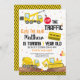 Diese Einladung zum niedliche Geburtstag beinhaltet Bauskipen und farbenfrohe Konfetti.