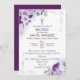 Feiern Sie die Taufe Ihres Kindes mit dieser eleganten Einladung mit violetten Blumen und einem niedlichen Kreuz. Ideal für eine religiöse und katholische Taufe. Celebra el bautizo de tu hijo con esta elegante invitación, adornada con flores moradas y una bonita cruz. Perfecta para una ceremonia religiosa y católica.