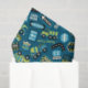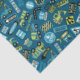 ein Muster für blaues Gewebe von Baukastenfahrzeugen und Zeichen für Geburtstagsgeschenke oder -handwerke