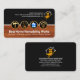 Eine obere dunkelgraue Schicht mit einem unterbraunen Holzstück wird durch eine weiße Linie abgegrenzt, die vier handwerkliche Werkzeugsymbole enthält. Die Werkzeuge können einen Teil des Werkes oder der Dienstleistung darstellen, die Sie anbieten können, z.B. der Hammer kann einen Schreiner (neben der Holzschicht) darstellen, das Schaufeldekor, das Zuhause-Armaturenbrett und das Bulb-Power-Steckerdach für Elektroarbeiten. In der Nähe der Basis befindet sich der Firmenname und eine Liste von Dienstleistungen, die Sie anbieten können. ; Ändern Sie sie in Anzug Ihrer eigenen Servicebedürfnisse. Oben auf der Karte befindet sich ein Zuhause-Wheelbarrow-Logo, das Sie mit den Kontaktdaten daneben benutzen können. Auf der Rückseite, in einem dunkelgrauen Cover, befindet sich oben das Logo der Rollkarren, gefolgt von Ihrem angesehenen Namen, Kontaktdetails und einer Slogan-Beschriftung, um Ihre Dienste zu veröffentlichen. Ein kreatives Design für Bauwesen, Handwerker und Zuhause-Verbesserung.