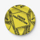 Eine Sammlung von roten, rautenförmigen Schildern mit schwarzem Druck, die "im Bau" steht, macht ein interessantes Industrie- oder Gebäude-Muster.