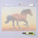 Wildes Senfpferd in der Bucht, das über ein trockenes Grasfeld läuft. Realistisches Kunstwerk aus einem originalen Ölgemälde des Pferd- und Wildtierkünstlers Crista S. Forest.