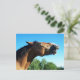Ein Buschpferd stürzt in die Luft mit einer Reihe von Sommerbäumen in der Ferne und unter einem schönen blauen Himmel und grünen Bäumen. Vielleicht ist er zu jemandem Sprichwort. Vielleicht kannst du auch. Sag sie jemandem, der es genießen würde. Die Liebe bekommt etwas in der Post.