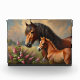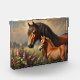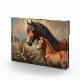 Bay Mare mit Foal-Wildblumen Fotoblock
