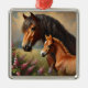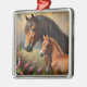 Bay Mare mit Foal-Wildblumen Ornament Aus Metall