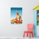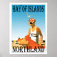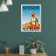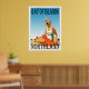 Ein Retro-Poster, das bis jetzt noch nie war. Eine Nachbildung eines alten Posters. Eine Vintage Strandlandschaft im Bay of Islands-Stil aus der Zeit des Dekos. Helle Farben mit einer Frau auf der Strandsonne, die mit einer roten Decke und einem flapper-artigen Polka dot cap badet. Exklusiv im Zazzle.com/Retro_Art Store.