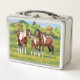 Bay Pinto Paint Quarter Pferde im Sommer Weide Metall Brotdose