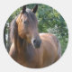 Bay Thoroughbred Pferd stehend auf Aufmerksamkeit. Großartige Geschenke für Pferdefreunde.