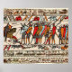 Das Bayeux Tapestry ist ein besticktes Tuch, das fast 70 Meter lang und 50 Zentimeter lang ist und die Vorkommnisse der Normandie-Eroberung Englands in Bezug auf William, Herzog von Normandie und Harold, Earl of Wessex, späterer König von England, darstellt und in der Schlacht kulminiert von Hastings. Es wird angenommen, dass es bis ins 11. Jahrhundert reicht, innerhalb weniger Jahre nach der Schlacht. Es erzählt die Geschichte aus der Sicht der erobernden Normannen, aber jetzt vereinbart, in England gemacht worden zu sein.