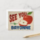 Eine bezaubernde Bayonne New Jersey Reisepostkarte mit einem hübschen roten Apfel und lustigen Retro-Text mit dem Titel "See you in Bayonne"
