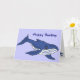 Wunderbarer künstlerischer Cartoon Blau Wal glückliche Geburtstagskarte Design Er ist voller Persönlichkeit. Auf der Außenseite der Karte steht "Happy Birthday" und innen steht: "Haben Sie einen Wal von einem Geburtstag."