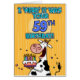 " Ich "lebe" es war Ihr 59. Geburtstag!" in Herden b-tägige Kuh des Spaßes, die eine Geburtstagskuchen-Grußkarte hält.