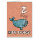 Alles Gute zum Geburtstagwal - 2 Jahre alte niedliche Buckelwal auf einer altersspezifischen Geburtstagsgrußkarte. Innerer Text: "Hoffnung haben Sie einen Wal einer Zeit!"