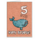 Alles Gute zum Geburtstagwal - 5 Jahre alte niedliche Buckelwal auf einer altersspezifischen Geburtstagsgrußkarte. Innerer Text: "Hoffnung haben Sie einen Wal einer Zeit!"