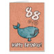 Alles Gute zum Geburtstagwal - 88 Jahre alte niedliche Buckelwal auf einer altersspezifischen Geburtstagsgrußkarte. Innerer Text: "Hoffnung haben Sie einen Wal einer Zeit!"