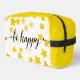 Handgeschriebener Kalligrafietext ist glücklich bei gelbem Aquarellsternhintergrund. Vector Grußkartendesign. | Bigstock® - Alle Rechte vorbehalten.