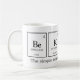 Seien Sie freundlich Chemie periodische Tabelle Science Tasse liest Be K I Nd, oder Sie können mit Ihrem eigenen vier Elemente Wort oder Namen personalisieren. Ein ideales Geschenk für junge clevere Wissenschaftler und begabte Kinder in Schwarz-Weiß. Einzigartige grafische Kunst von www.mylittleeden.com